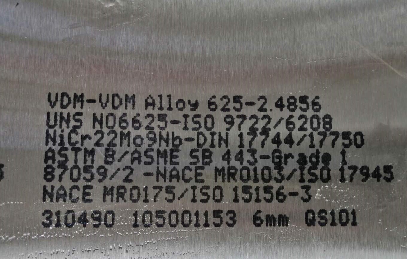 625合金密度:8.44g/cm3, 熔點:1290-1350 ℃,磁性:無